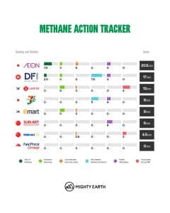 Mighty Earth has released the first-ever assessment of methane disclosure and climate performance by major food retailers in Asia. The report finds that large supermarket chains operating in China are falling significantly behind in addressing climate pollution—particularly in reducing methane emissions from meat, dairy, and rice supply chains.